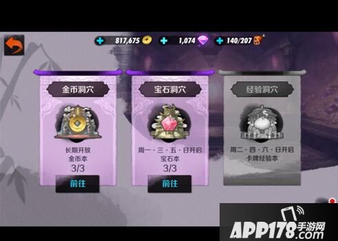 资源洞穴分为金币洞穴、宝石洞穴和卡牌经验洞穴。金币洞穴长期开放,其他两个洞穴则是交替开放的。每个副本每天有三次机会,每次消耗十点体力。在下总是处于金币和经验不足的状态,所以这两种洞穴是绝对不会放过的!