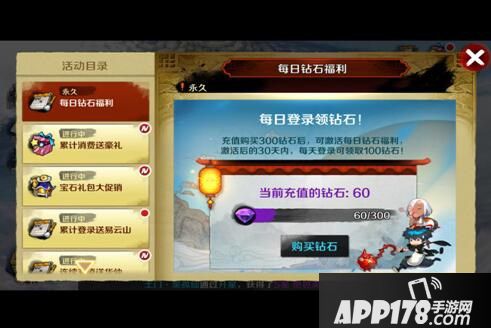 在主界面右上角有个活动界面,打开就能看到各种各样的活动。每隔一段时间活动会换,玩家可根据自己的需求选择参加哪些活动。不过像累计登陆送卡牌碎片、消费钻石回馈这类纯送福利的活动千万不要错过哟。
