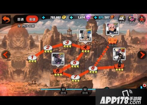 进入副本后点击关卡开始冒险!英雄难度的每天能挑战三次,会掉落卡牌碎片、宝石、经验和金币。普通难度的没有次数限制,但只掉落材料、经验和金币。挑战需要消耗体力,不同的关卡消耗的体力不同。首次挑战还能获得钻石奖励。