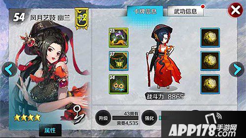 艺妓幽兰的好处在于其换位的技能,将5号位最难打到的后排换过来,一旦集火秒杀,就可以造成多打少的局面。不过艺妓幽兰作为气功师本身也是很脆的,所以一定要在强化上尽量前期至少强化到3、4;装备都用究极的套装,刻印全满。这样才能站得住。