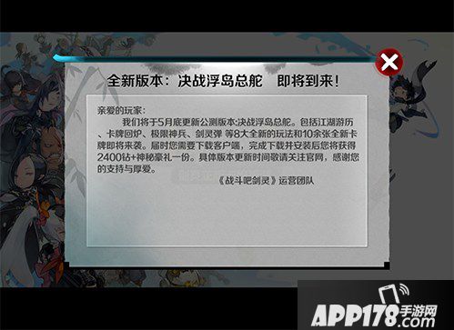 战斗吧剑灵决战浮岛总舵即将与玩家们见面。那么,作为最新的版本,会有怎么样的内容加入到游戏中,5月底的最新版本,会给予玩家怎么样的惊喜呢?下面,就和小编一起来看看吧。