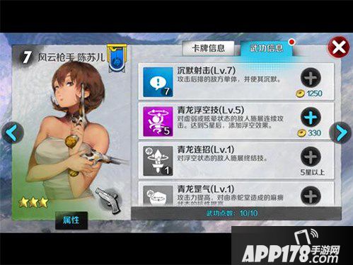 枪手,资质B,所需内力30,伤害高,对虚弱和晕眩状态的敌人施展连招,五星后增加麻痹效果并触发三段连招。