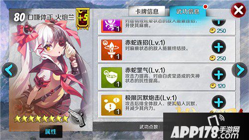 赤蛇罡气可以在提升口嫌体正 火炮兰伤害的同时提升她的失神抗性,让她可以更好的免疫被白虎堂造成的失神状态。但是由于其他技能过于强力,所以建议放在最后加点。