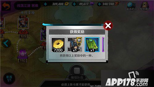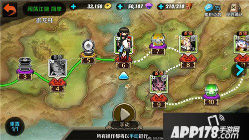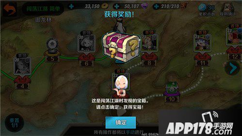 小伙伴们每天能挑战一次游历江湖,直到完全通关或者所有卡牌都无法上阵。每挑战一定数量的关卡可以获得一个奖励宝箱,直至最后一关。