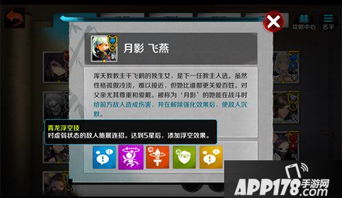 青龙堂SS级刺客,五星可对陷入虚弱状态的敌人施加浮空效果。