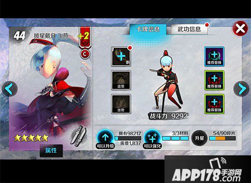 披星戴月飞月的技能攻击敌方单体,是玩家们前期过渡必不可少的一张卡牌,而且获取方式简单,升星容易!玩家们可以通过英雄副本【亡者森林4】、【修炼谷4】、【烈沙地带11】、闯荡江湖(简单)(普通)(困难)、金币商店、比武商店、普通寻宝、高级寻宝和任务来获取披星戴月飞月!