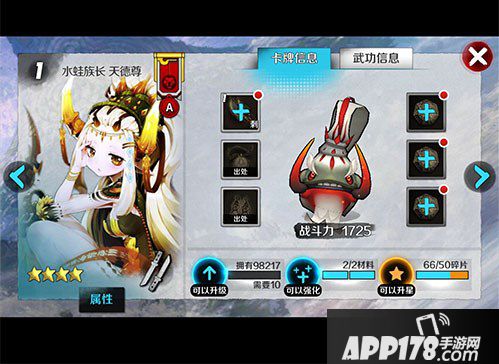 水蛙族长天德尊的技能攻击敌方单体并使目标中毒,还能通过吸血将生命分配给同排队友,同时也是赤蛇堂的发动机!水蛙族长天德尊玩家们可以通过英雄副本【白雾森林5】、【白雾森林11】、风云棋盘、闯荡江湖(困难)、钻石商店、高级寻宝和任务来获取!