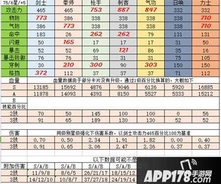 所有数据都是以等级75级,强化+5,星级6级为基础的,由于很多卡牌没有升级到75/+5/6星,所以是通过较低等级换算过来的,基本差不多的。
