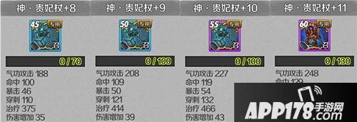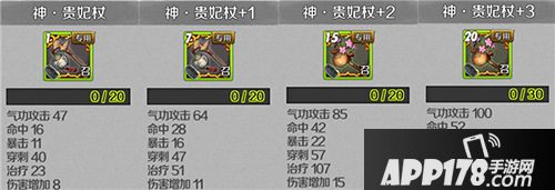 贵妃杖拥有着攻击、治疗双属性,气功攻击、命中、暴击、穿刺、伤害增加可以让SS南素柔的技能对敌方造成更大的伤害,从而通过毒性DEBUFF和伤害让敌方陷入一个无法治疗的尴尬境地。同时,贵妃杖的高治疗加成也让南素柔的回复能力有了质的提升。