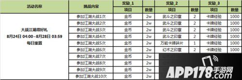 大战江湖得好礼!参加一定次数的江湖大战,即可获得包括万能卡牌碎片、八星材料在内的每日江湖好礼!
