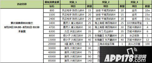 活动时间内,累计消费一定额度的钻石即可获得SS火炮兰碎片,还有合成宝石箱、丰富卡牌碎片、万能卡牌碎片等你来拿!