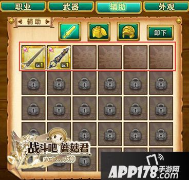 最后,辅助栏中的装备,可以先以对目前职业和个人能力有加成为主的装备进行填充,之后再来是高等级和高质量的装备,而且武器辅助栏尽量挑可以养成的武器。