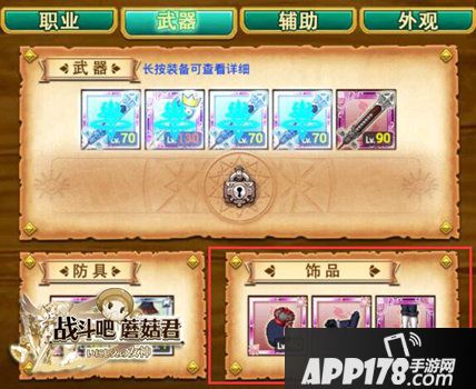 《战斗吧蘑菇君》中饰品会掉落三个部分,战力高低通常为手>头>脚,意思是同样的东西,比如说同样都是限制突破,手的数值会比脚的高。