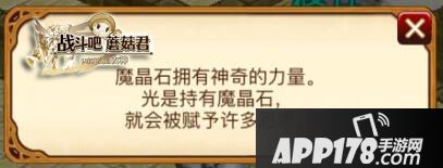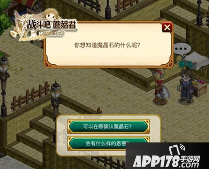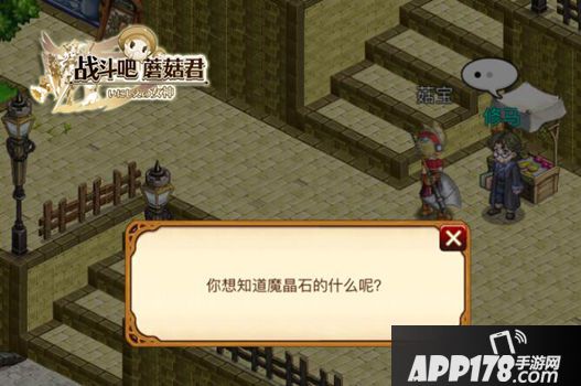 在《战斗吧蘑菇君》中,魔晶石可以用于蔓多拉国王处换取强力装备武器,游戏中不少大佬的综合战力都是靠武器开创出一篇蓝天,萌新一定很好奇魔晶石这种神奇的东西,那么,不如去城下町找一找修马,他一定能够为你解答。