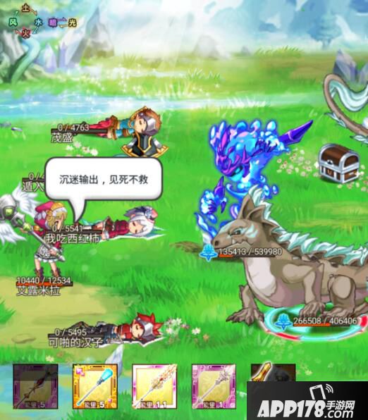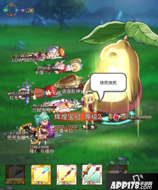 后来我就学聪明了,在这种情况下,先保自己,白毛增加的防御个回复的血量能让你顶住BOSS的下次伤害,白毛增加的光属性也能让你的复活技能回复量大大提升,下一个技能就是复活回血,一个蓝宝石加一个治愈技能几乎能让所有人满血满状态!在和boss大战一百回合!