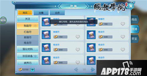 进入摆摊系统后,首先看到的便是其他人出售的道具,玩家再次能够购买到制造符、强化材料、珍品装备、境界丹、任务道具、附魔符、离线道具、洗练道具、技能书等等道具。这些道具能够让玩家变得更强,不过不要冲动消费,货比三家才是硬道理。