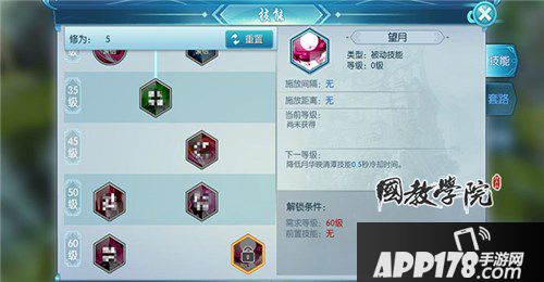 玩家基础望月技能来看,该技能属于被动技能,施放间隔无,施放距离无,降低月华映清潭技能0.5秒冷却时间。