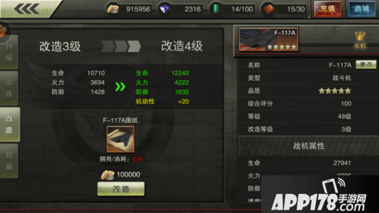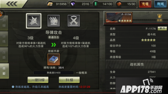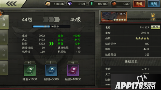 升级属于基础玩法,加属性主要是生命、火力和防御这三个基础属性。由于这个系统太基础,结果往往被很多玩家忽略。其实,系统给的各类经验卡也是非常给力的,不知不觉就能攒出50~60张经验卡之多。而实测F117+3,每升一级战力提高达到441,提升也是不可小视。所以,看了这篇文章的你,赶紧去看看包里还有没有多余的经验卡吧!