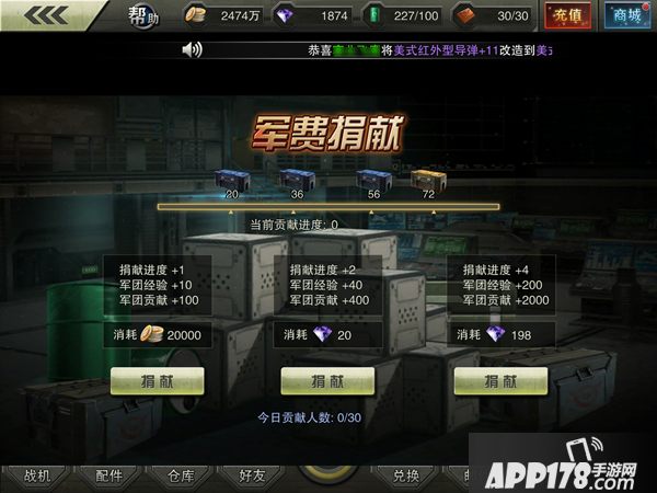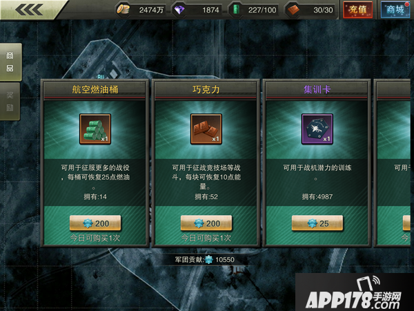 这里要带着大家算一笔明白账,20钻石=400贡献,198钻石=2000贡献,而军团商店中,航空燃油桶和巧克力,都只要200贡献。也就是说,20钻石=航空燃油桶*1+巧克力*1,真的是非常划算,大力推荐每天捐一发20钻!