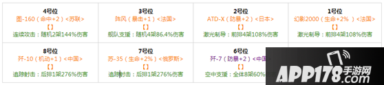 7号位:此位置为机动位,就看你首次钻石研发出什么机体啦。最好是前排单点的机体。例如:F-22、歼-11B、F-14、FC-1等。
