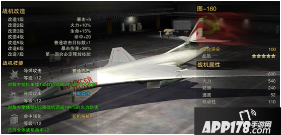 4号位:图-160。所有橙机中唯一一架技能“连续攻击”(全体随机攻击2架敌机)的机体,你值得拥有!前期副本即可开刷碎片,改造难度低。