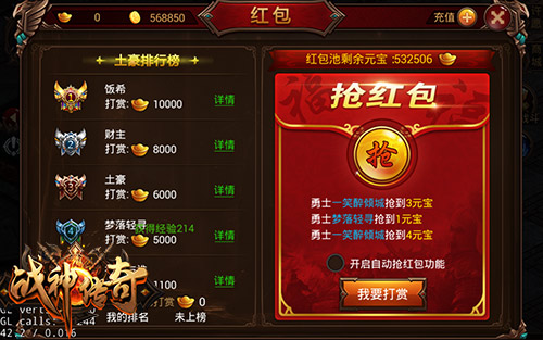 自由交易,狂刷BOSS爆装备换取元宝;首充返利,坐拥资源让你更快更高更强;超值投资,用超低折扣获得海量经验一路高歌猛进;海量许愿券,免费抽取终极套装一刀88级……太多的福利无法一一展示,需要各位宝宝亲身前往体验,首发在即,《战神传奇》毋庸太多投入,让你白手起家坐拥天下!
