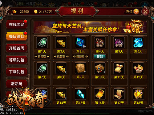 每日签到:坚持每天上线签到,丰富奖励任你拿,轻松升级不是问题!
