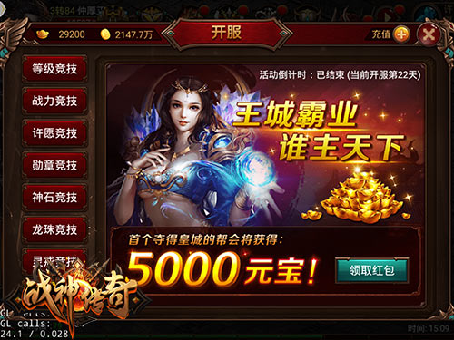 弱肉强食,这里是强者的天下!攻下皇城,离王座再近一步!《战神传奇》再度结合GVG玩法、攻城战等特色玩法,主推攻城战活动,首任攻城战开启,首次占领王城的帮会将获得5000元宝攻城红包,不仅仅是城主,所有服务器的公会中的每人都将获得1000元宝!更有霸气的称号双手奉上,王城之主,受天下英雄膜拜,威震四海!
