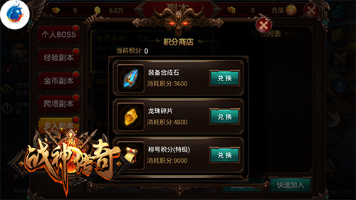 紧密而来的怪物、boss需要团队的协作和互相扶持的战斗,越往后怪物越难打败,但是击杀后所获取的积分也会越多!积攒的积分千万别浪费,快来积分商城兑换进阶道具吧!传说中的龙珠碎片,装备养成必备的合成石,还有稀有珍贵的灵戒碎片等全服罕见的道具都在这里,收集积分快来兑换吧!