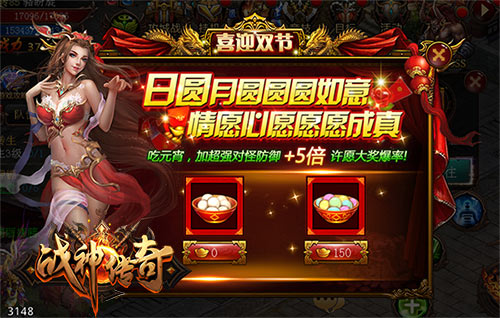 全民领礼包庆新春,爆竹buff爆率翻倍!自11日起,进入节日狂欢界面,不仅每日登录可以领超多绑定元宝和进阶道具,而且错过了还可以进行补签!欢度新年的尾巴,新春元宵也热气腾腾上线了,吃元宵事事遂愿,战斗中为你加超强对怪防御,并给你带来5倍许愿大奖爆率的贵族体验!活动期间许愿还可获得双倍积分,神装爆率瞬间提高三倍,还可以与贵族buff叠加使用。有新春buff加持,许愿池,我们走!