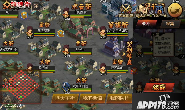 在攻击和占据街道的过程中,玩家也是会获得奖励的,在镇魂街页面的右侧,玩家可以点击箭头打开收获页面,攻击和被攻击,以及成功占据街道达到一定的时间,都能在收获页面领取获得的奖励,奖励的内容就是培养守护灵的道具,而越高级的街道,产出的奖励也是越多的。