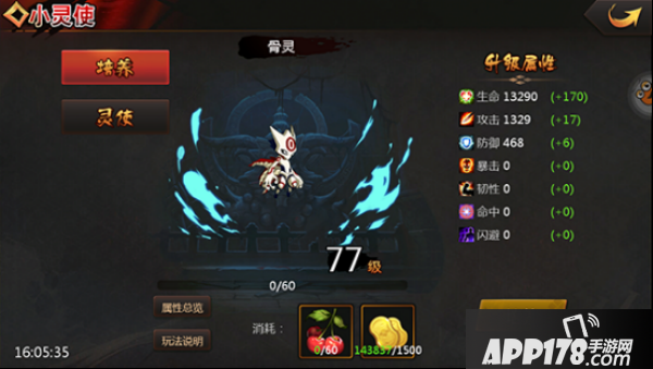 小灵使系统在角色达到7级的时候开放。灵使可以增加角色的各项基本属性,包括:生命、攻击、防御、暴击、韧性、命中、闪避。