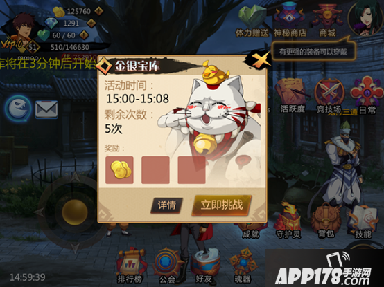 另外,限时活动像金银宝库这种的,各位也不用担心会错过时间哦,每次开启前两三分钟,我们都会有弹窗通知。拿起你们的武器,和各路BOSS一决高下吧!