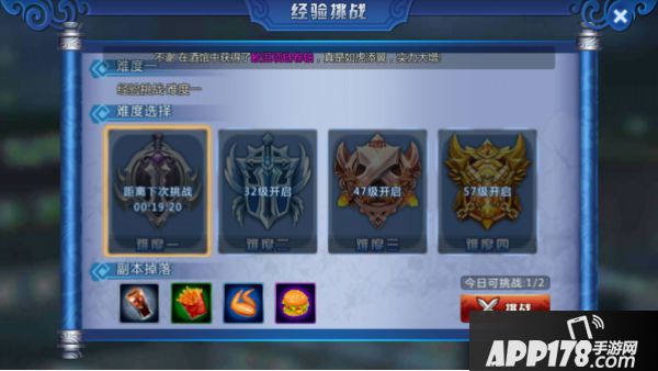 想要更快升级,挑战经验副本当然是必选关卡啦。在《镇魂街:对决》中玩家等级达到28级,即可开启经验副本,玩家可以在主城界面中点击“历练”选择“经验挑战”副本。目前经验副本分为四个挑战难度,玩家达到相应等级即可挑战更高难度的经验副本。