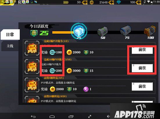 2.查找可以获得经验(EXP)的任务,并点击“前往”。