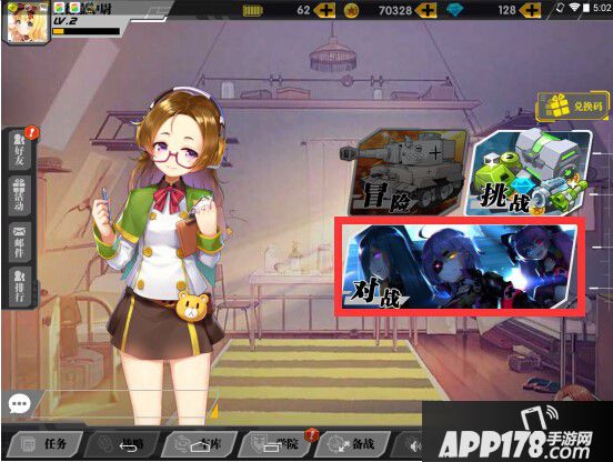 (1)进入主界面,点击“对战”。