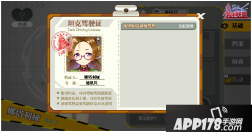 同时娜塔莉娅妹子还拥有轻型坦克初级驾照。如果将娜塔莉娅妹子分配到您的轻型坦克中,她可以为您的轻型坦克增加2%的生命值、2%的攻击力和20点装甲。