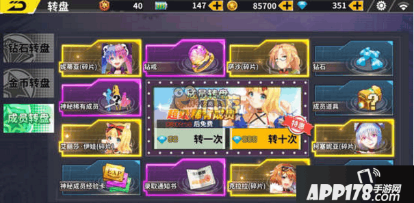 也是比较简单的,通过转盘还可以获得成员碎片,然后收集到要求的个数就可以直接招募解锁获得~