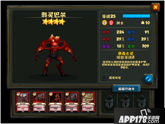 中规中矩的战士,技能也一般,被动可能会被某些活动关卡有特效。感觉设计师不太喜欢恶魔类生物啊。