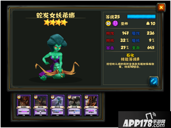 这个生物没什么好说的,基本上在西方的所有魔幻游戏中都是差不多的定位。看她被动就知道这个是竞技场的常客了。满级全体麻痹10回合,对于铺场类的对手来说是个噩梦一样的存在。