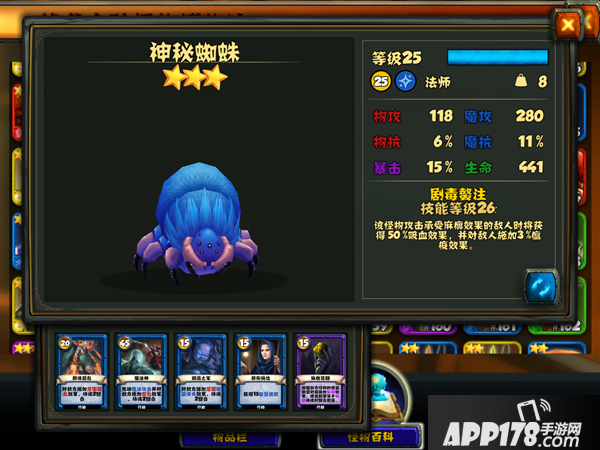 综合数值和牌组,感觉蓝蜘蛛不是很好用的怪物。