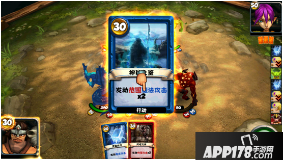 就这样,小编跟着引导进行战斗,战斗直到我们场上各有3只怪后发生了改变,我派上的法师怪,瞬间用一张魔法卡 秒掉了对方的全部怪物,取得了胜利。哈哈,原来《战龙酒馆》也是亲儿子统治天下的。咦,貌似不小心暴露了什么...算了不管了,继续战斗。