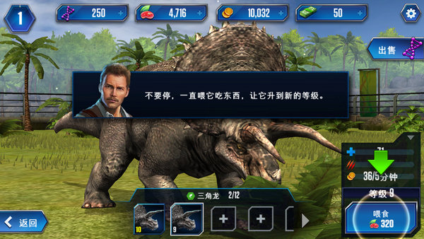 饲养恐龙:想要恐龙快速成长?那就给它喂食吧!恐龙将通过吃东西的方式提升等级。不过喂食虽然能够快速提升恐龙等级,但达到一定等级后恐龙将停止成长,需要再“进化”。