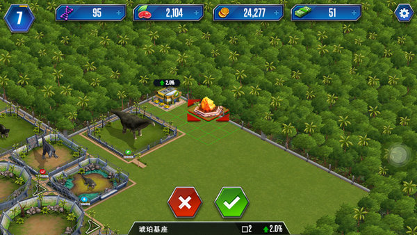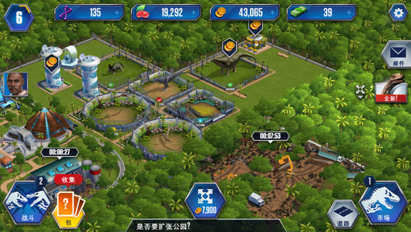 开拓公园:恐龙与建筑物越来越多,你该如何是好?那就快来拓展公园领土吧!2级以上玩家,可花费一定的金币或现金可拓展公园领地,摆放更多建筑物与恐龙。