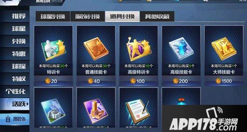 二、新增活跃兑换商店队长可通过参与“月签到”系统,以及部分运营活动获得“球场徽章”。使用足够的“球场徽章”兑换自己喜欢的物品啦。兑换界面:“商城-活跃”页签可兑换物品:SS球星、服饰、道具,其他收藏。(下图仅供参考,一切以正式版本为主)