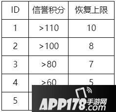 3、新增信誉积分每日恢复上限,玩家每日可恢复的信誉积分上限由玩家所处的信誉积分段所决定: