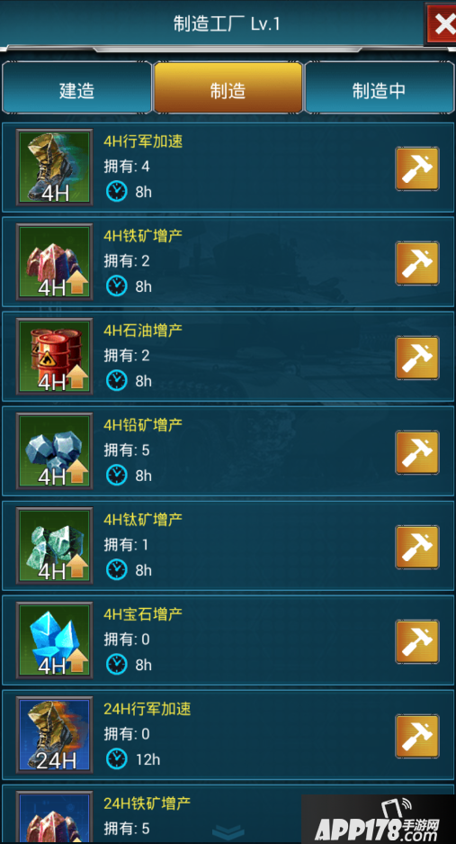 功能:进行道具生产的建筑。VIP能解锁更高级道具的生产权限。