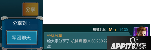 想把坐标位置告诉给军团其他成员,好让团员来帮忙协助防守,除了把坐标手动发送给大家外,其实可以切换到世界频道,点击自己的基地图标,在弹出的界面点击右上角的“分享”,即可将自己的坐标分享到【军团聊天】界面,团员其他人员可以直接通过点击该坐标直达对方,进行【协防】设置。