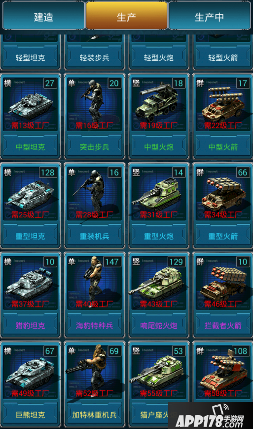 指挥官可以通过生产更高级的坦克来代替旧的坦克,这样战斗力也会较原来提高。越高级的坦克属性越高,战斗自然越强。因此,当出现更高级别坦克时,理论上是要逐步淘汰旧有的坦克。此外,大家也可以通过改造工厂将低级别的坦克进行改造升级哦。