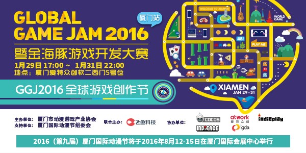 2016年1月29日-31日,全球最大规模的游戏创作活动Global Game Jam将再度开启。本次Global Game Jam在中国区设置了北京、广州、厦门、上海4个站点,目前已全面开启报名。其中,本次活动厦门站“Global Game Jam2016全球游戏创作节暨金海豚游戏开发大赛“由厦门市动漫游戏产业协会及飞鱼科技联合主办,厦门国际动漫节组委会支持、COCOS、爱特众创、Indieplay、IndieAce等共同协办,在引入专业媒体合作的同时,设置奖励以及提供对于优秀作品后续优化开发的机会。